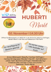 Wir laden herzlich zum Huberti-Markt 2025 ein. :-) Wir starten um 14:00 Uhr mit einer kleinen Andacht in der Kirche, der Markt beginnt schätzungsweise um 14:30 Uhr.
